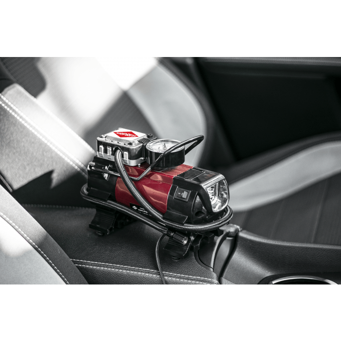 Naš mini kompresor za automobil napajan strujom od 12V je idealan uređaj za putnike koji nemaju pristup struji od 230V. Ovaj model kompresora bez problema priključujete na utičnicu upaljača za automobil, što ga čini iznimno lakim za korištenje.