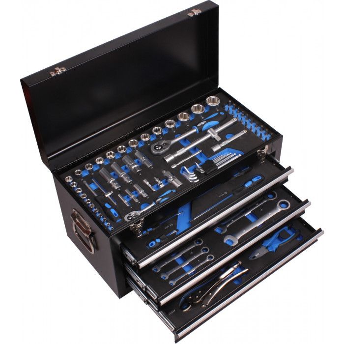 Profesionalni set od kromirno-vanadijske čelika u metalnom kutiji s tri ladice na ključ